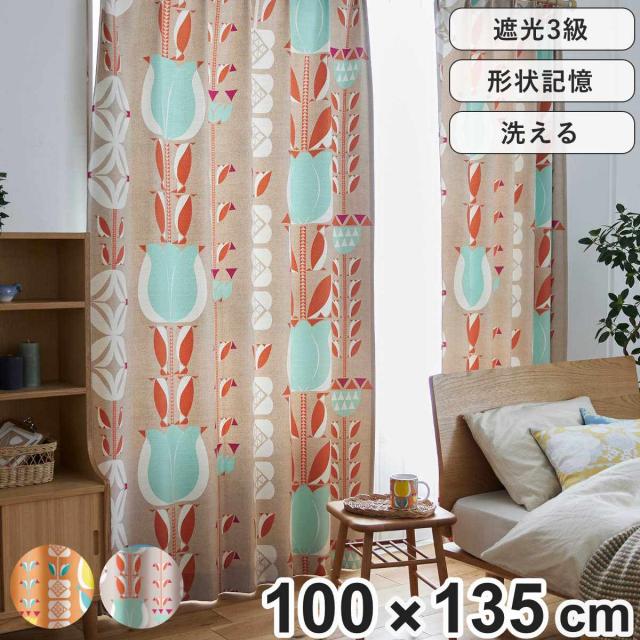 カーテン 遮光3級 チューリッペン 100×135cm 1枚入り スミノエ ドレープカーテン ( ドレープ 1枚 3級遮光 遮光 既製品 チューリップ 柄 ウォッシャブル インテリア レトロ 花柄 1.5倍ヒダ 日本製 )