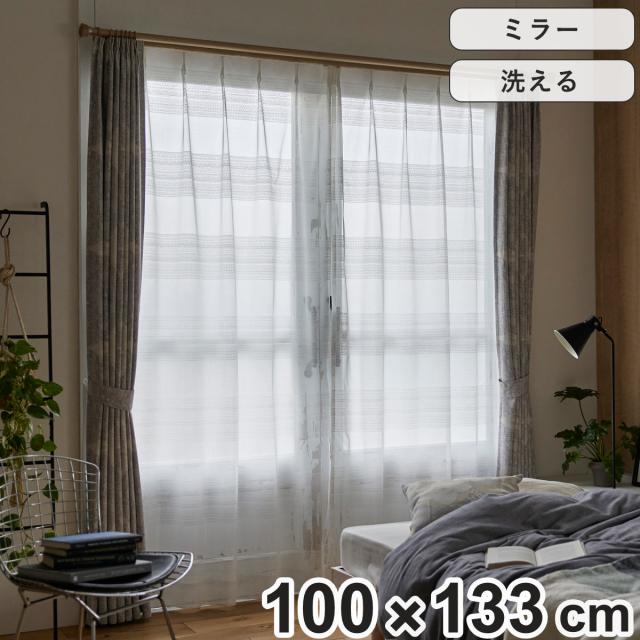 レースカーテン ミラーレース ローヌ 100×176cm スミノエ ウォッシャブル ( カーテン レース 既製品 1枚 シンプル 洗える インテリア ボーダー柄 1.5倍ヒダ 日本製 )