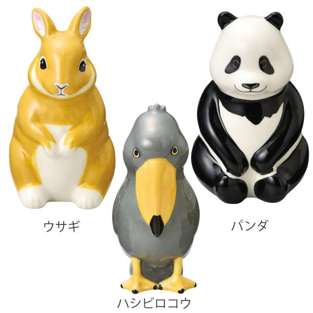 | サイズ | ウサギ:約幅7×奥行7.8×高さ12.6(cm) パンダ:約幅7.4×奥行7.4×高さ11.5(cm) ハシビロコウ:約幅6.2×奥行8.3×高さ12.9(cm) |