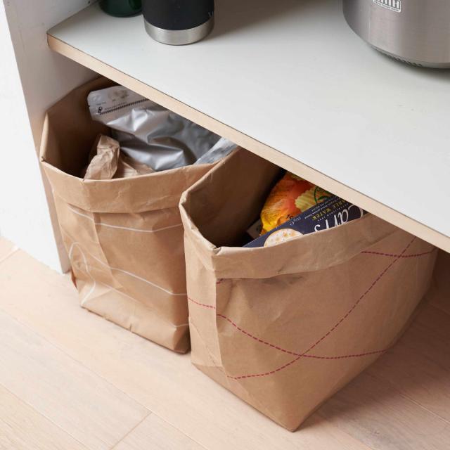 紙素材なので、折り曲げて高さを自由に変えられます。長さのあるおもちゃのレールや、重さのある園芸用品などに合わせて、好きな高さに折り曲げれば様々な場所にしまうことが可能です。上を閉じれば目隠しすることもできて便利です。ぐしゃぐしゃにしても破れづらく長くご使用いただけます。
