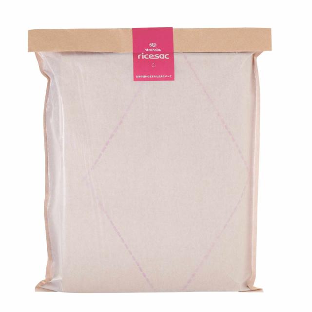 防湿性、通気性、強度を備えたじょうぶな米袋です。国の品質基準で厳しく管理された「重包装袋」で作られています。扱う人の安全や作業性を考えた、特殊な紙の3層構造でできています。