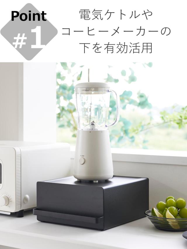電気ケトルやコーヒーメーカーの下を有効活用できるキッチン家電下ラックです。引き出し付きなので、家電と一緒によく使う小物もひとまとめに収納することができます。