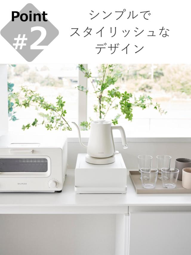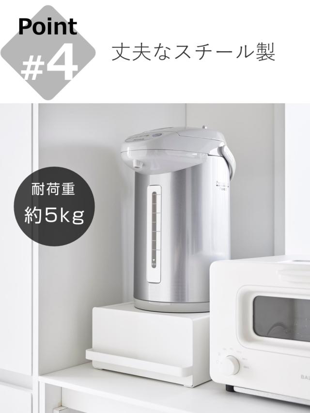 丈夫なスチール製なので電気ポットも置くことができます。ミキサーやコーヒーメーカー、電気ケトルなど様々なキッチン家電に対応しています。