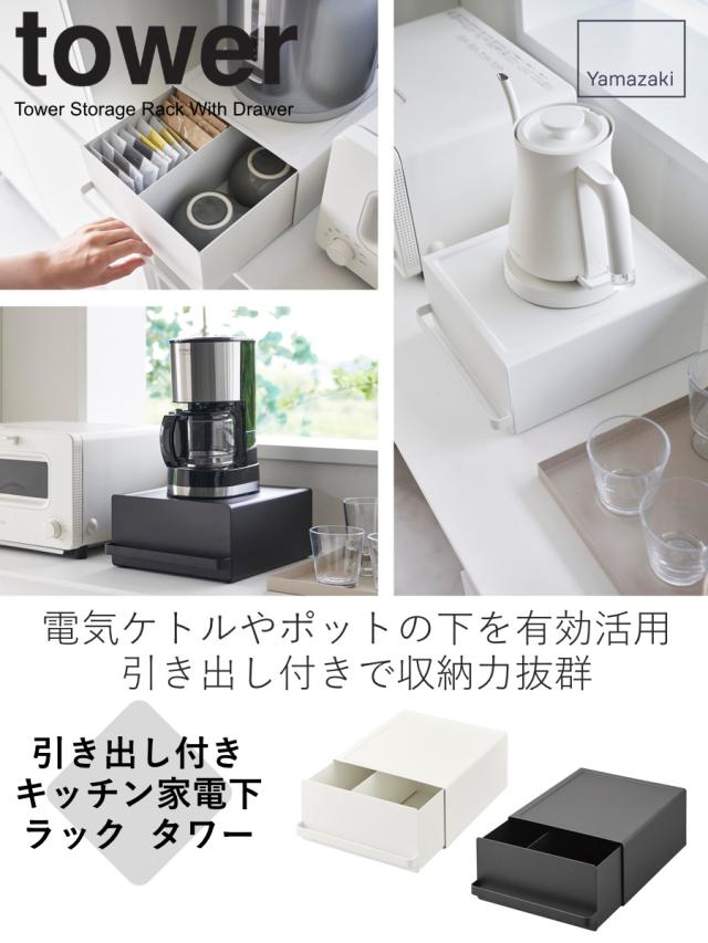 tower 山崎実業 引き出し付きキッチン家電下ラック タワー ( タワーシリーズ 家電下ラック 引き出し付き キッチン家電下収納 家電下収納 ポット 電気ケトル 収納 キッチン スチール製 tower 山崎実業 キッチン)