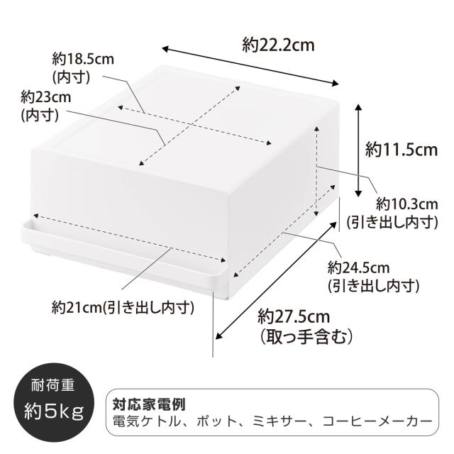 | サイズ | 約幅22.2×奥行27.5×高さ11.5cm(取っ手含む) 上段(凹み部分):約幅18.5×奥行23cm 引き出し:約幅21×奥行24.5×高さ10.3cm(仕切り板含まず) |
