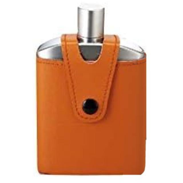 まるで映画のワンシーンに登場するような、洗練されたステンレスの100mlスキットルです。カーブしたボディがポケットにフィットし、ステンレスと本革のケースは、使う度に風合いが出ます。