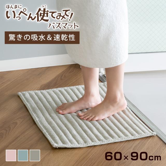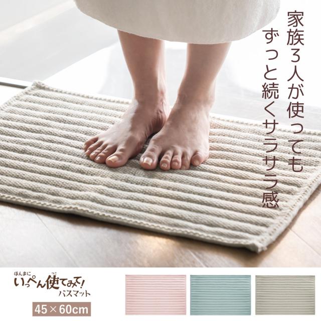 いっぺん使てみてバスマット 45×60cm ( お風呂マット マット 吸水 抗菌 防臭 すべり止め 洗濯OK 45×60 足ふきマット お風呂 バスグッズ 浴室 脱衣所 足拭き シェルピンク ペールブルー サンドベージュ 無地 )