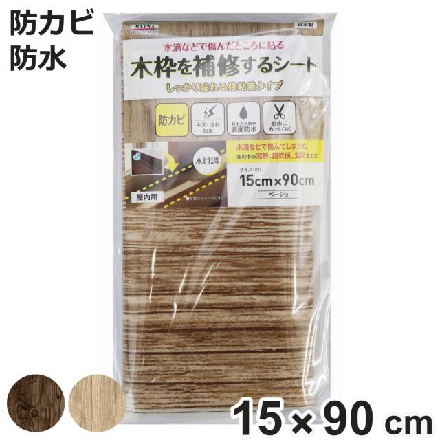 補修シート 木枠補修シート 木目 15cm×90cm ( 木枠 保護 シート 壁 家具 角 はがせる 傷防止 防カビ 防汚 抗菌 防水 結露対策 キズ保護 キズ防止 汚れ防止 窓 小窓 扉 ドア 貼ってはがせる フリーカット )