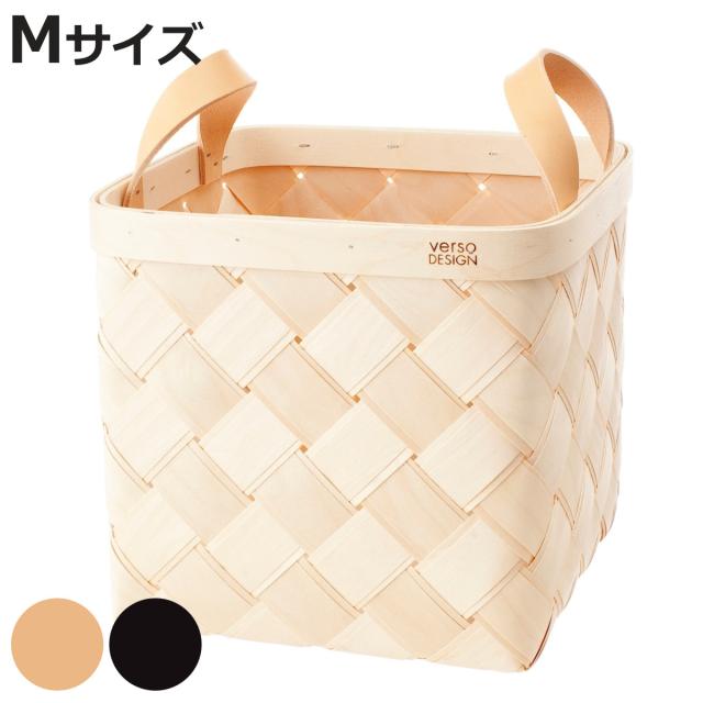 収納ボックス VERSO LASTU M バスケット 木製 ( 収納 カゴ かご 四角 幅25×奥行25×高さ24cm 天然素材 バーチ 白樺 収納かご 小物収納 手編み 持ち手 レザー ハンドメイド 小物入れ おしゃれ インテリア 玄関 リビング キッチン )