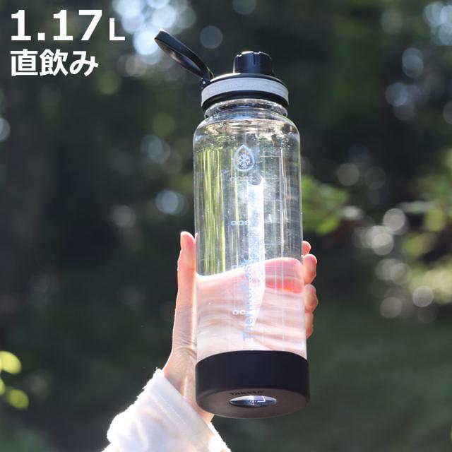 水筒 約1L 1.17L サーモフラスク クリアボトル ( 直飲み ウォーターボトル ボトル マイボトル 軽量 軽い 目盛り付き シンプル 目盛り 持ち運び 持ち手付き 水筒 1リットル)