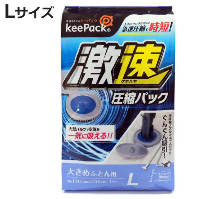 圧縮袋 激速 布団圧縮パック L 布団収納 ( ふとん 布団 シングル ダブル 収納 収納袋 高速圧縮 スティック掃除機 掛け布団 敷き布団 キャニスター掃除機 省スペース スピード圧縮 クローゼット 押入れ 有効活用 フタ付きバルブ )