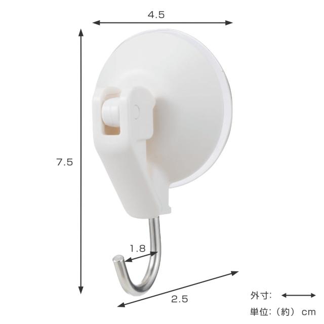 | 材質 | カバー・レバー:ABS樹脂 フック:ステンレス鋼線 吸盤:塩化ビニル樹脂 |