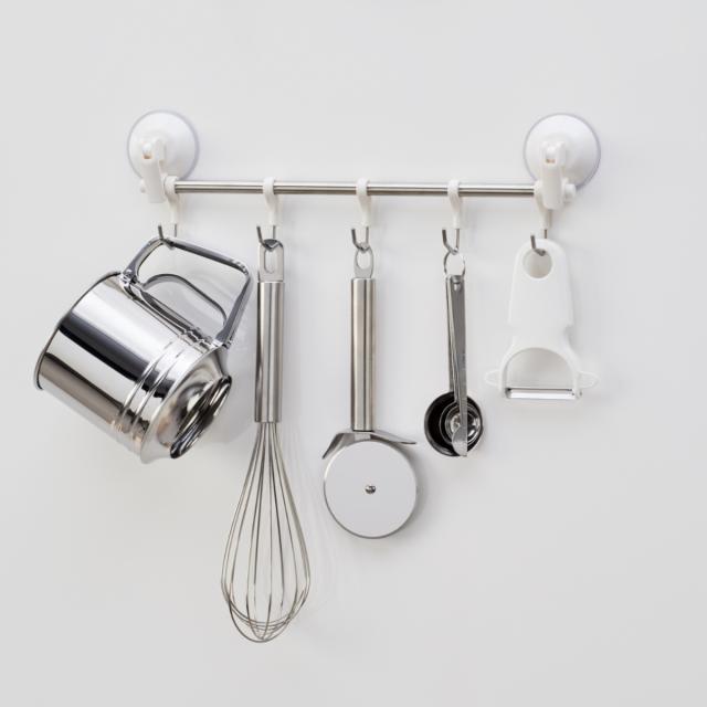 | 備考 | 取り付け方法:レバー式吸盤 (取り付けられる場所) ・光沢のある平らな面 ・吸盤より大きいタイル、模様のないステンレス、プラスチック面、透明ガラス、鏡面(くもり止め加工などの表 面加工鏡は除く) ・冷蔵庫・洗濯機などの金属塗装面 (取り付けられない場所) ・キッチン、浴室などで特に水滴のつく所、水のかかる所 ・レンジ・ストーブなどで高温になる所 ・ステンレス、ホーロー流し台、タイル、木壁など鉄以外の面 ※ステンレス・ホーロー流し台にはマグネットの付くものもあります。 |