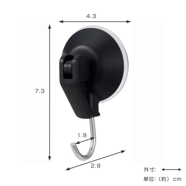 | 材質 | カバー・レバー:ABS樹脂 フック:ステンレス鋼線 吸盤:塩化ビニル樹脂 |