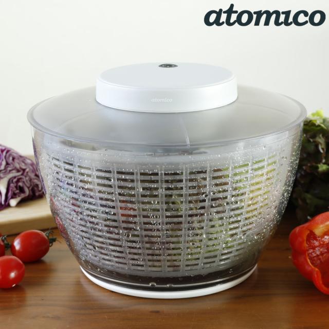 電動サラダスピナー atomico 充電式 コードレスサラダスピナー ( アトミコ 電動 野菜水切り器 野菜 水切り 滑り止め付き 野菜の水切り コードレス スピナー 回転 下ごしらえ用品 時短 便利グッズ )