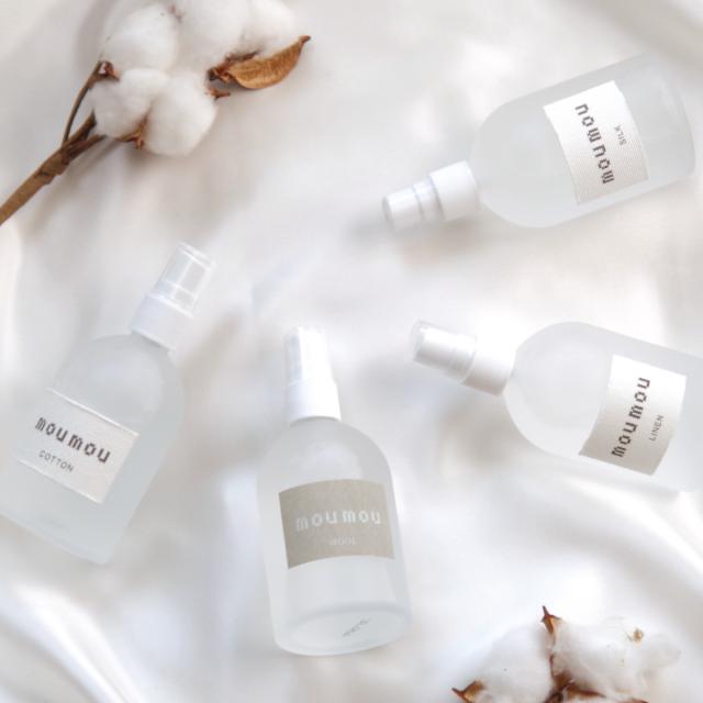 就寝時、やわらかいファブリックの香りで包んでくれる、ピローミストです。コットン、シルク、リネン、ウール、暮らしに寄り添うファブリック素材の持つイメージを香りに。自分にとって心地の良いファブリックに包まれた時の、安らぎの瞬間を連想させます。