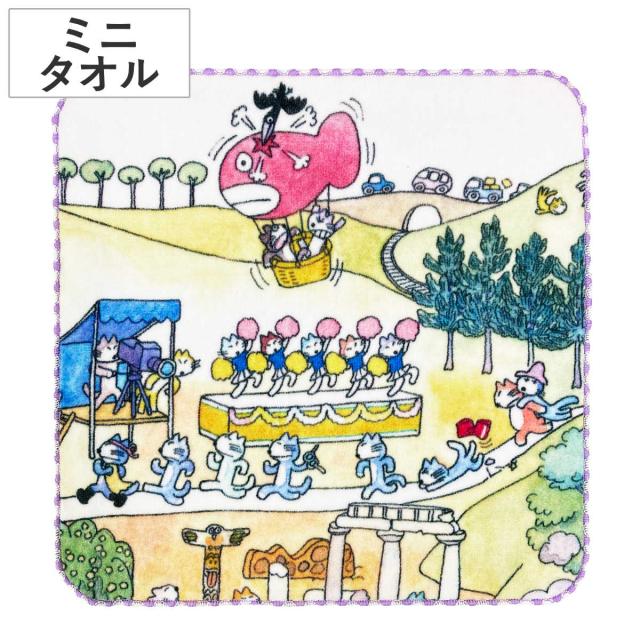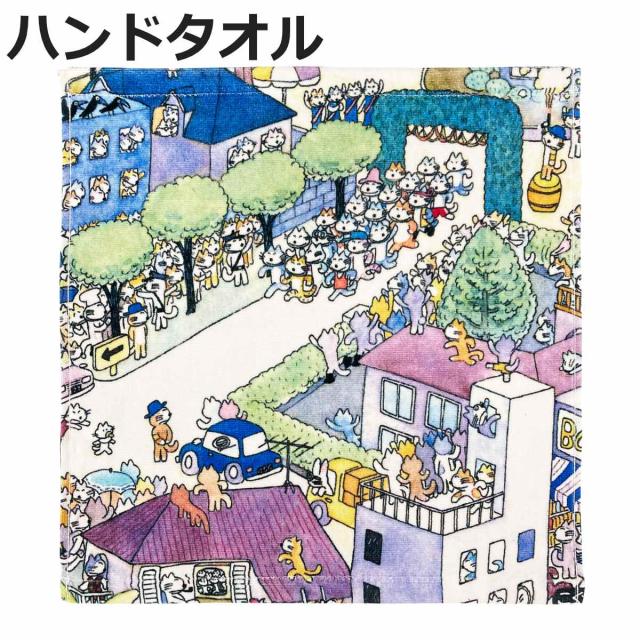 ハンドタオル 34×35cm 11ぴきのねこ マラソン大会 ( タオル 綿100 汗拭きタオル 手拭き タオルハンカチ たおる 絵本 馬場のぼる 34×35 バス用品 デイリータオル バスグッズ ねこ )