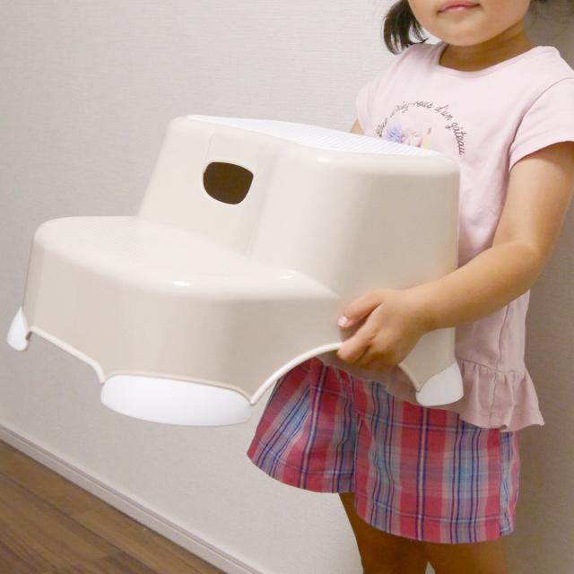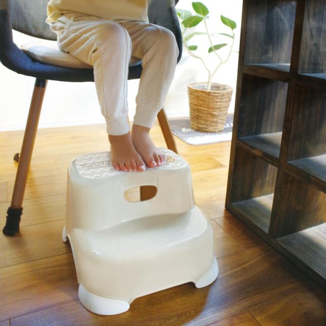 洗面台で手を洗う時やトイレトレーニングなど、あと少し手が届かないお子さまのお手伝いをする2段式の踏み台です。お子さまの「自分でやりたい」をサポートし、自立心を育みます。