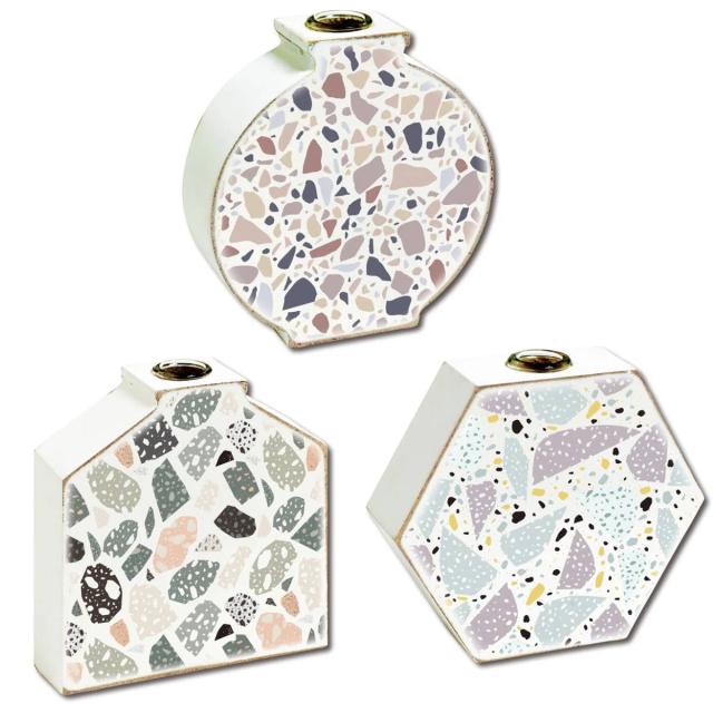 ●木製のベースにさまざまなデザインを施した、ナチュラルなアートフラワーベースです。