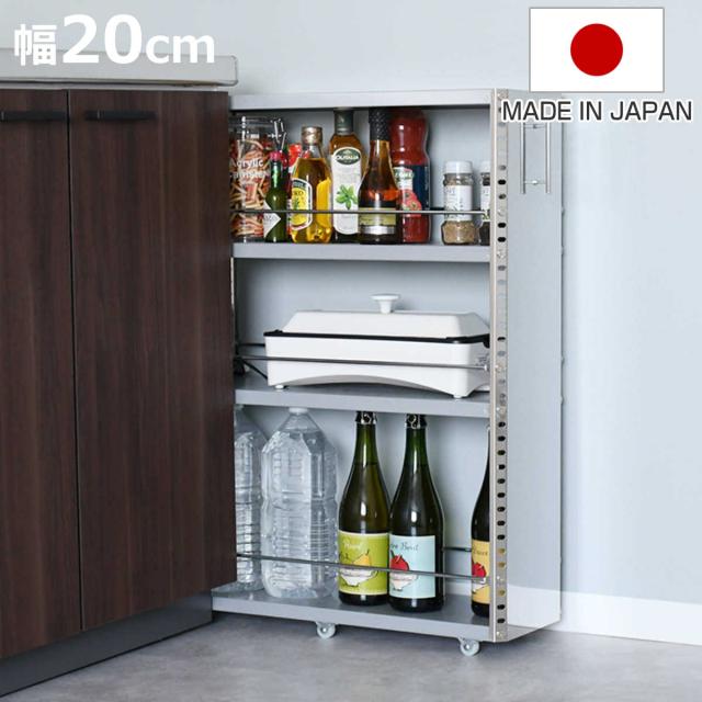 キッチンストッカー ステンレスすき間収納 幅20cm 高さ81cm ロータイプ ( キャスター付き 天板付き ステンレス スリム おしゃれ 隙間収納 すき間収納 隙間ラック スリムラック キッチン収納 キッチン すきま収納)