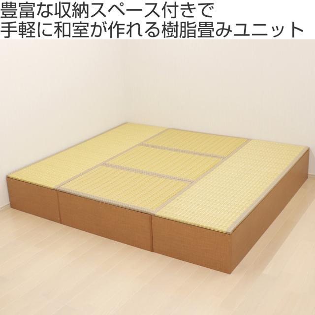 樹脂畳ユニット Lセット ロータイプ 幅180cm×2 幅90cm×3 収納付ベンチ ( 高さ31.5cm 畳 小上がり 収納 ベンチ 収納ボックス セット 掘りごたつ 和モダン 和風 シンプル )