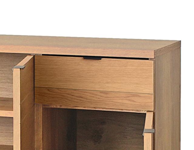 フルスライドレール仕様で使いやすい引出しは、リビング周りの小物やカトラリーの収納にもぴったりな程良い深さです。取っ手はスタイリッシュで主張しないデザインで、さりげなくアクセントに。