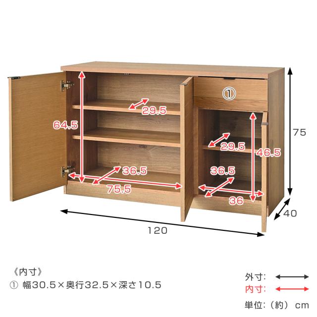無駄なく収納できるサイドボード 幅120cm
