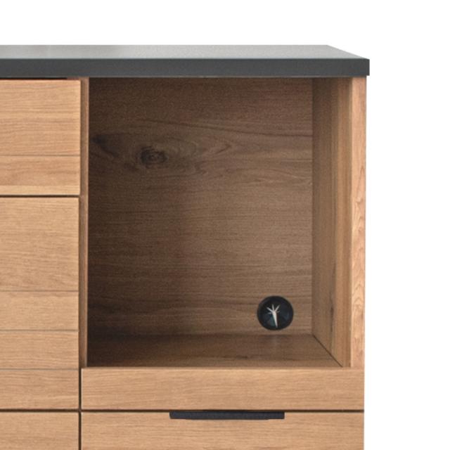 前板と扉には、美しい木目が特長のオーク突板を使用しています。木の温もりと、しっとりとした手触りをお楽しみいただけます。