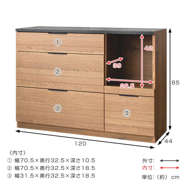《 LH15337 キャビネット 北欧 ナチュラル 食器収納 カトラリー 家電収納 炊飯器 ポット 引出し 引出 幅120 奥行44 高さ85 cm センチ コンパクト 木目 ブラウン 茶色 シンプル スタイリッシュ インテリア 模様替え 引越し 引っ越し 新生活 》