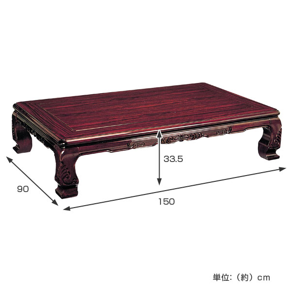 座卓 幅150cm 宝来 木製 ローテーブル 完成品 日本製 ( 座卓テーブル 和風座卓 座敷机 和室 畳 座敷 長方形 紫檀 化粧シート仕上げ シタン リビングテーブル センターテーブル テーブル 机 古民家 純和風 彫刻入り )