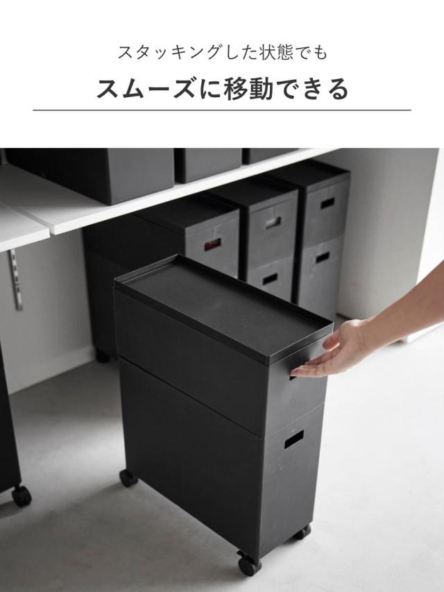 別売りの【蓋付き収納ボックスワゴン】にスタッキングして使える追加ボックスです。Sサイズの収納ボックスワゴンと2段までスタッキングが可能で、収納場所や用途に合わせて組み合わせて使用できます。