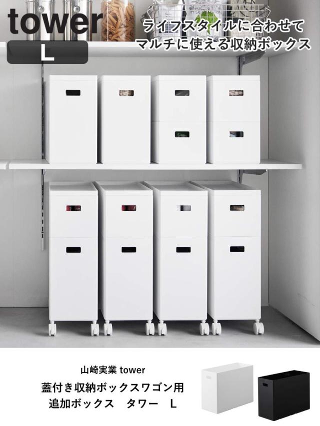 tower 山崎実業 蓋付き収納ボックスワゴン用追加ボックス タワー L ( タワーシリーズ 蓋付き収納ボックスワゴン用 追加ボックス Lサイズ フタ付き収納ボックスワゴン用 キッチン収納 キッチン すきま収納)