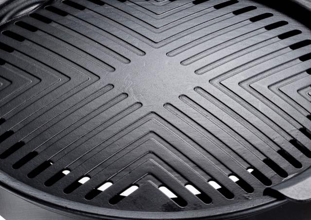 本格的な焼肉をおうちで味わえる焼肉プレート・丸型です。余分な脂はプレート下の油受け皿に落ちる構造です。プレートに油が溜まりにくく、おいしくヘルシーに焼き上げます。