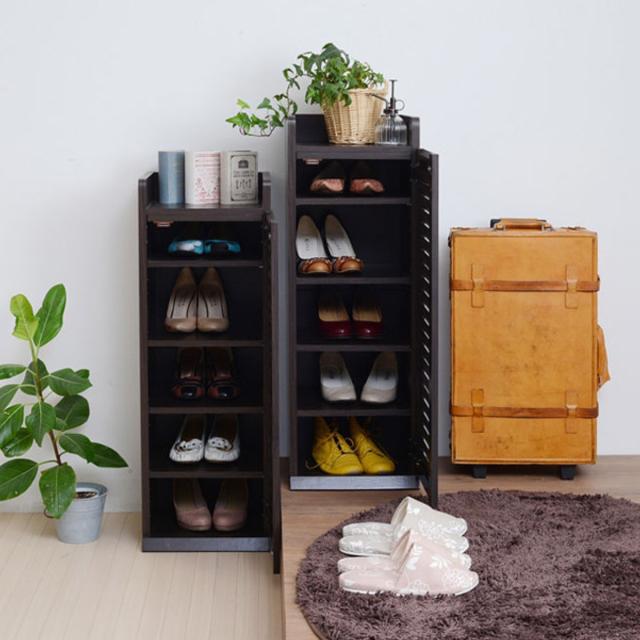 下駄箱 幅31.5cm 2台入り ルーバー 組立品 ( シューズラック シューズボックス 玄関収納 靴箱 靴入れ 靴 収納 シューズ 木製 スリム コンパクト 開き戸 通気性 おしゃれ 高さ調節 幅30 )