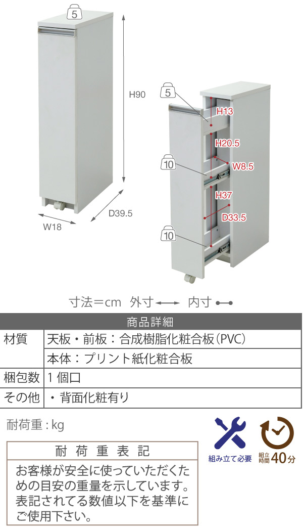 | サイズ | 約 幅18×奥行39.5×高さ90(cm) |