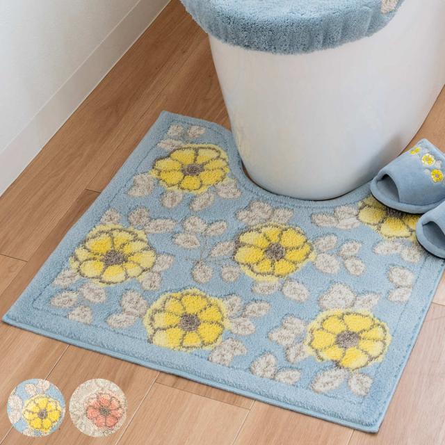 トイレマット フローリア 55×60cm ( トイレ マット 洗濯OK すべり止め 足元マット 抗菌 防臭 吸水 トイレ用品 花柄 日本製 トイレタリー 滑り止め 55×60 長さ55 幅60 洗濯可 丸洗い ウィルトン織り 丈夫 ブルー ベージュ )