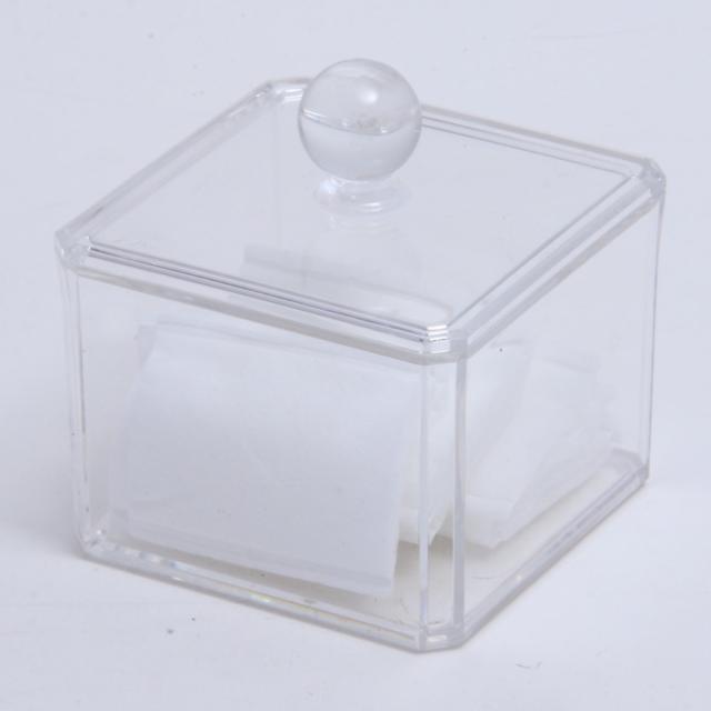 蓋付きのため塵やホコリの進入を防ぎます。綿棒、コットンなどの衛生用品収納としても適しています。
