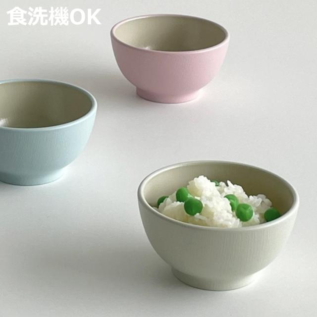 やさしい色合いのペールカラーの子ども用茶碗です。お子様の手にすっぽりと収まりやすい小ぶりなお茶碗です。樹脂製で割れにくく、安心してお使いいただけます。