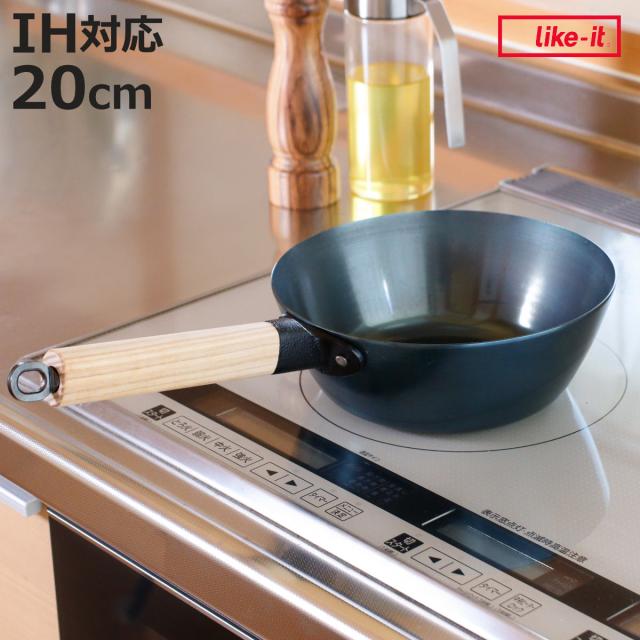 鉄フライパン 20cm 深型 IH対応 着脱ハンドル オーブンでも使える ライクイット 日本製 ( ガス火対応 Like-it 取っ手が取れる 鉄のフライパン 20センチ 鉄 フライパン 炒め鍋 いため鍋 オーブン対応 シーズニング不要 調理用品 )