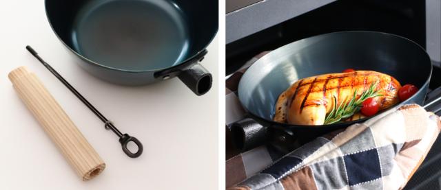 ハンドルを取り外すことができるので、本体だけをオーブンやグリルに入れて調理することができます。料理のレパートリーも増え、できあがったらそのままテーブルに出すことができるので、アツアツの料理を楽しめます。