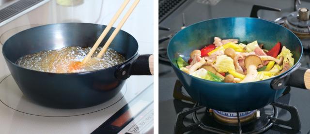 深型のフライパンは、揚げものや炒めものに最適です。揚げ物は少量の油でカラッと仕上がり、野菜炒めはシャキシャキ食感に仕上がります。