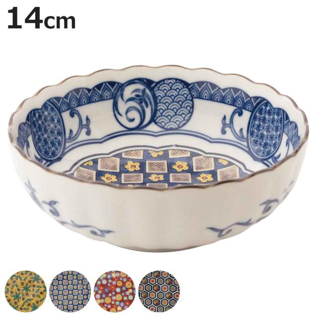 小鉢 14cm 4.5寸 ボウル 藍染小紋 磁器 ( 食洗機対応 電子レンジ対応 鉢 取り鉢 取鉢 おひたし 和え物 サラダ 副菜 お漬物 和風 おしゃれ )
