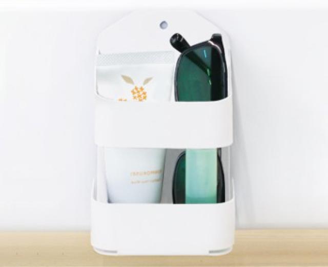 縦に長い物も収納できる小物ホルダーです。収納した物が前に倒れにくいガードがついています。壁に穴を開けずに使えるマグネット式なので、賃貸の方でも安心してお使いいただけます。