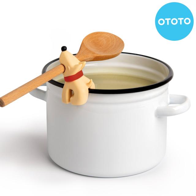 お鍋のフチに掛けておたまやヘラを持ってくれたり、お鍋のフタを少し開けたまま固定し、ふきこぼれを防止してくれるスプーンホルダー&スチームリリーサーです。ワンちゃんモチーフで2役をこなしてくれる番犬です。