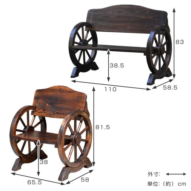 | サイズ | 【車輪ベンチ大】本体:約 幅110×奥行58.5×高さ83(cm)座面高さ:約38.5(cm) 【車輪ベンチ小】本体:約 幅65.5×奥行58×高さ81.5(cm)座面高さ:約38.5(cm) 【焼杉テーブル】本体:約 幅110×奥行55×高さ48(cm) |
