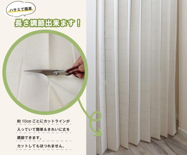 全長200cmのロングサイズで、冷暖房の効率を向上させます。また、横のラインにそって約10cm事にハサミでカットが出来る仕様なので、お好みの長さに調整可能です。