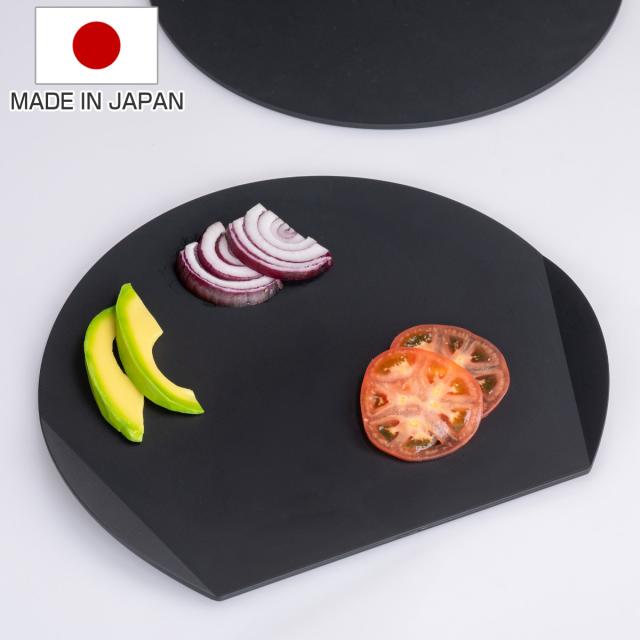丸いまな板 持ち手付き 食洗機対応 耐熱エラストマーカッティングボード かまぼこ型 アイメディア 日本製 ( まな板 丸型 D型 抗菌 黒 カッティングボード 半円 円形 丸まな板 取っ手付き 耐熱 エラストマー 合成ゴム ブラック )