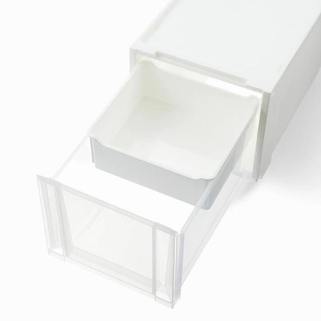 別売りのコンビネーションケースに設置すれば、ハンカチや下着などの小物を仕切れるので整理整頓しやすくなります。