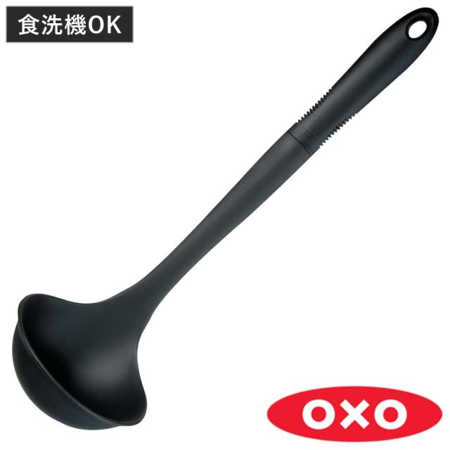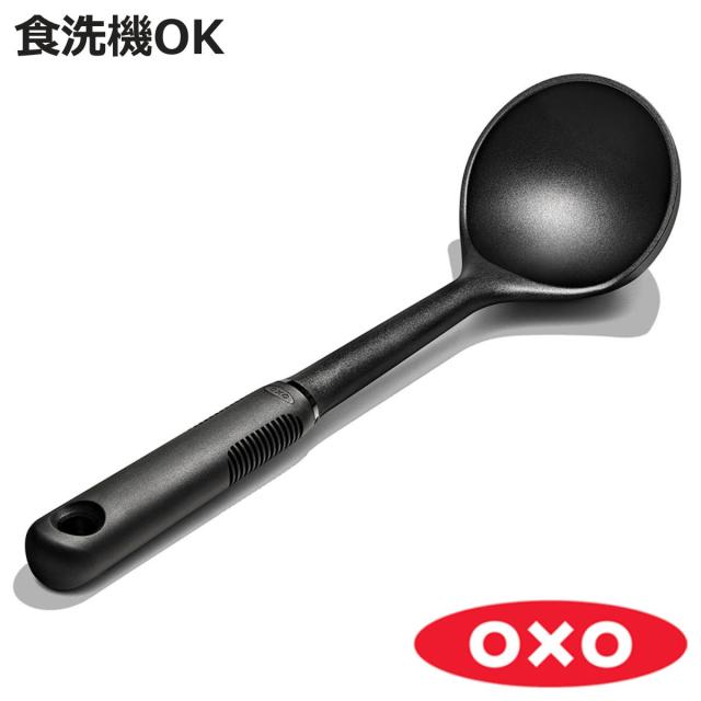 OXO お玉 食洗機対応 ナイロンレードル ( レードル ナイロン製 おたま オクソー ナイロンお玉 使いやすい 耐熱 キッチンツール ナイロン製お玉 ブラック 穴なし 穴無しお玉 キッチングッズ 調理器具 )