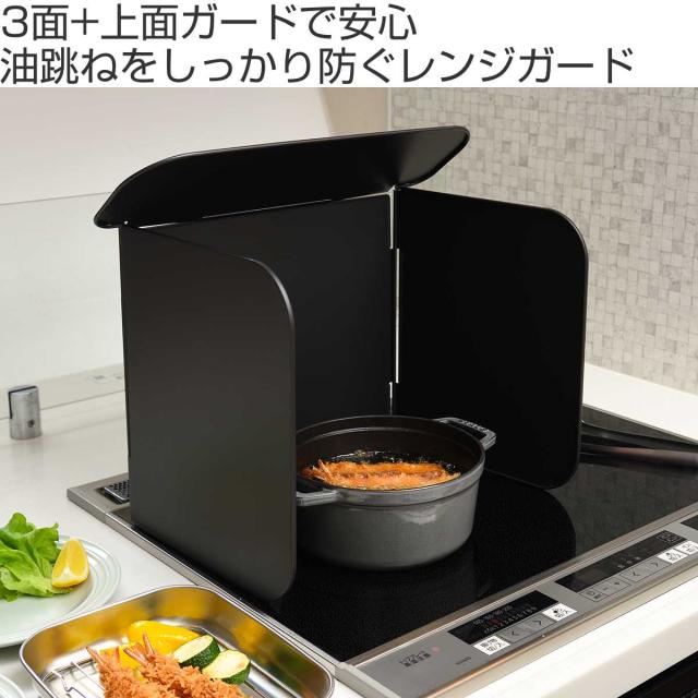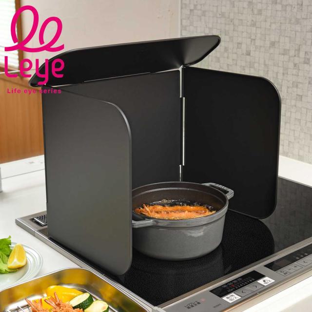 レンジガード コンパクト4面レンジガード leye ( レイエ 日本製 折りたためる コンパクト 油はね防止 油はねガード 汚れ防止 油汚れ 汚れ 防止 4面 ガードプレート 揚げ物ガード 折りたたみ 分解 洗える 黒 )